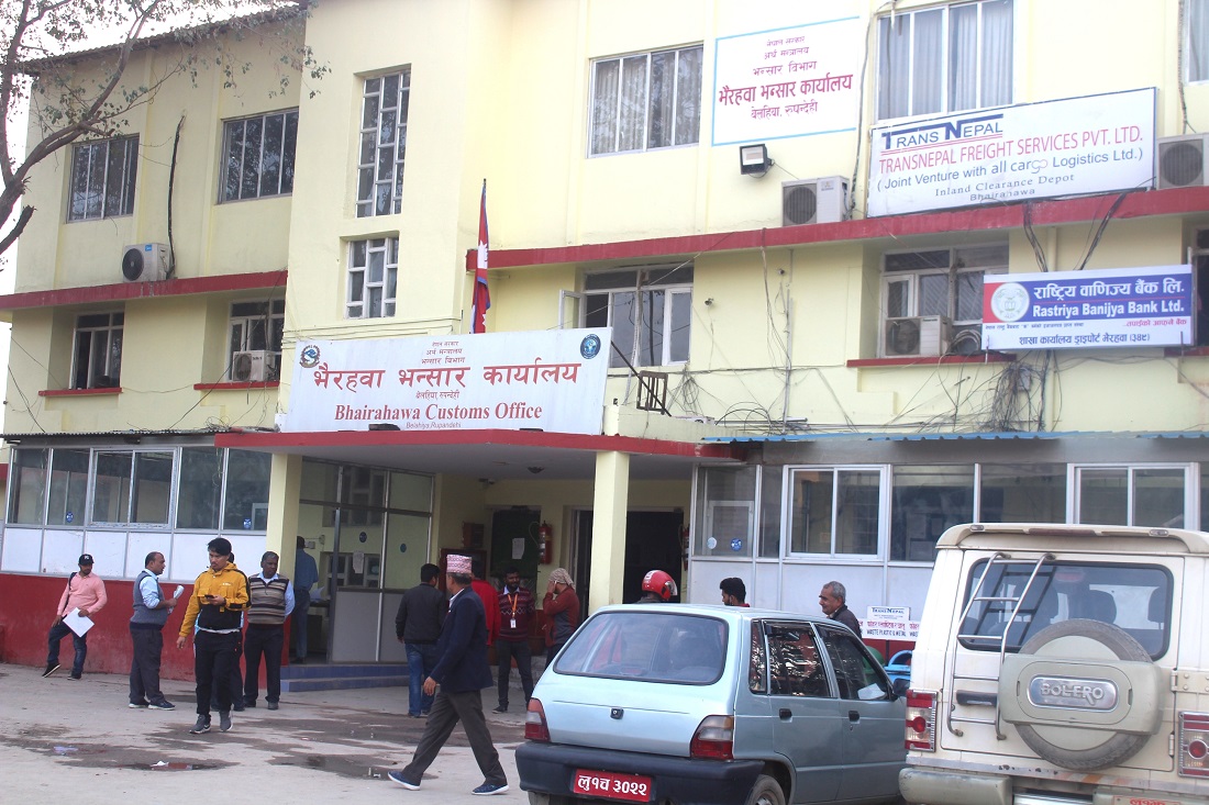 पुस महिनाका लागि दैनिक ३० करोड ४२ लाख लक्ष्य पाएको कार्यालयले दैनिक ४-५ करोड मात्र राजश्व संकलन गरिरहेको छ । यो प्रावधान आउनुअघि कार्यालयले दैनिक ८० करोडसम्म राजश्व संकलन गरेकोे रेकर्ड रहेको भैरहवा भन्सार कार्यालयका सूचना अधिकारी तीर्थराज पासवानले बताए ।