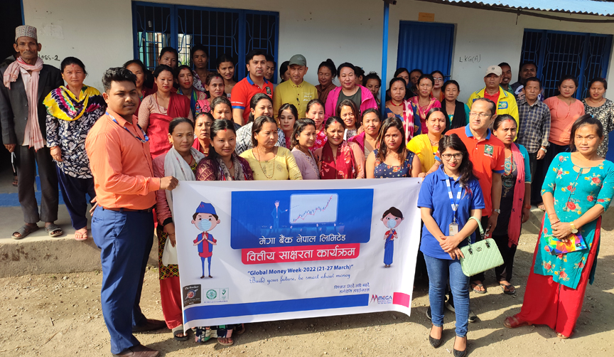 काठमाडौँ । मेगा बैंक नेपाल लिमिटेडले देशव्यापी वित्तीय साक्षरता कार्यक्रम सञ्चालन गरेको छ । ‘ग्लोबल मनी वीक २०२२’ लाई सफल बनाउने उद्देश्यले मेगा बैंकले चैत ७ गतेदेखि १३ गतेसम्म सातै प्रदेशका विभिन्न शाखा कार्यालयहरुमार्फत वित्तीय साक्षरता कार्यक्रम सञ्चालन गरेको हो ।