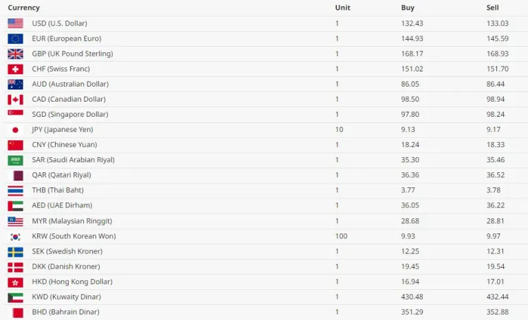 काठमाडौं।नेपाल राष्ट्र बैंकले आज साउन ३० गते मंगलबारका लागि विदेशी मुद्राको विनिमय दर तोकेको छ।