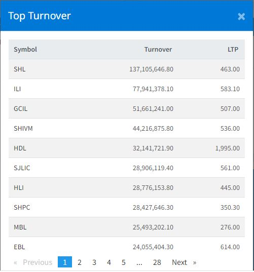 यस दिन २७१ कम्पनीको ४० लाख ९ हजारभन्दा बढी कित्ता सेयर कारोबार भएको छ । १३ करोड ७१ लाख रुपैयाँसहित कारोबार रकममा सोल्टी होटेल अग्रस्थानमा रहेको छ । यसैगरी, दोस्रो र तेस्रो स्थानमा क्रमशः आइएमई लाइफ इन्सुरेन्स र घोराही सिमेन्ट्स परेका छन् ।