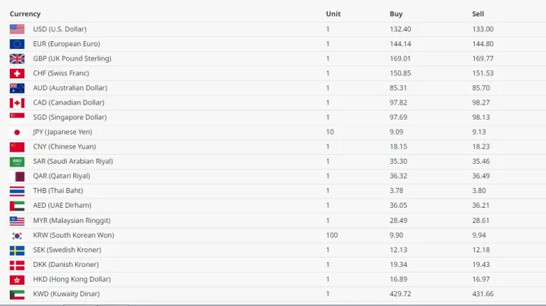 अमेरिकी डलर एकको खरिद दर १३२ रुपैयाँ ४० पैसा र बिक्री दर १३३ रुपैयाँ शून्य पैसा पुगेको छ।