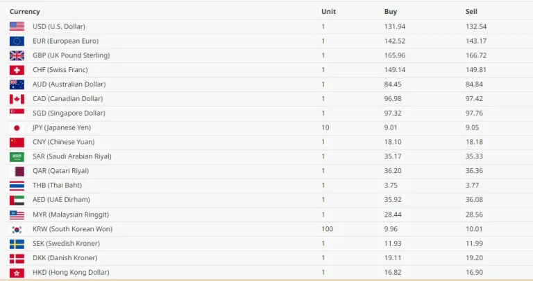 अमेरिकी डलर एकको खरिद दर १३१ रुपैयाँ ९४ पैसा र बिक्री दर १३२ रुपैयाँ ५४ पैसा पुगेको छ।