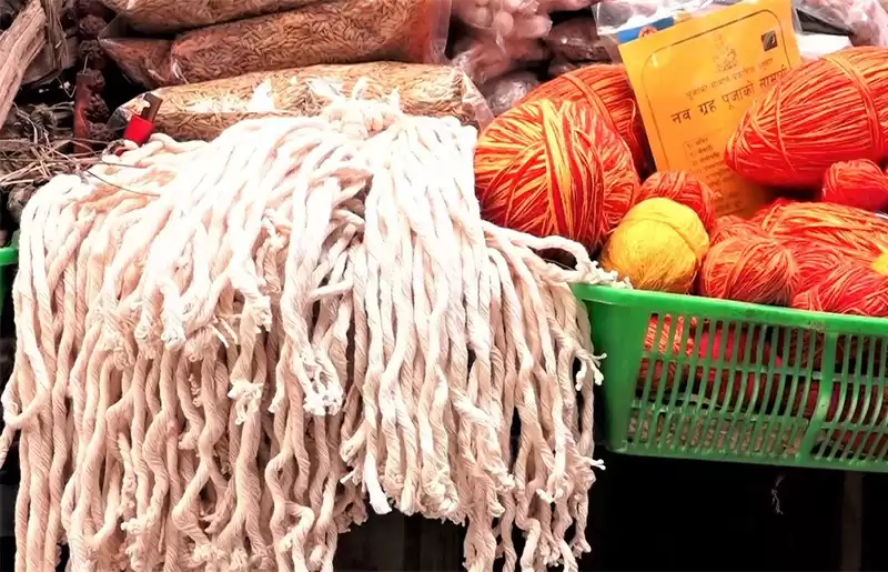 मध्यविन्दु (नवलपरासी) । हिन्दू धर्मावलम्बीले मात्र प्रयोग गर्ने जनै बनाउने प्रचलन कम हुँदै गएपछि बजारमा खरिद गरी प्रयोग गर्ने क्रम बढेको छ ।