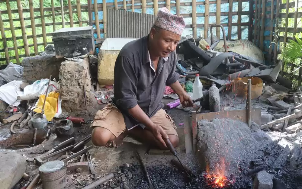 “मलाई फलाम जमाउनका लागि वेल्डिङ मेसिन, धार लगाउन काट्न र चिल्लाउनका लागि ग्रेन्डर र आगो फुक्नका लागि विजुलीबाट चल्ने मेसिन आवश्यक छ,” विश्वकर्माले भने, “मसँग किन्नका लागि पैसा छैन । सरकारले दिएमा काम गर्न सहज हुन्थ्यो ।”