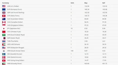 अमेरिकी डलर एकको खरिद दर १३२ रुपैयाँ ९० पैसा र बिक्री दर १३३ रुपैयाँ ५० पैसा पुगेको छ।