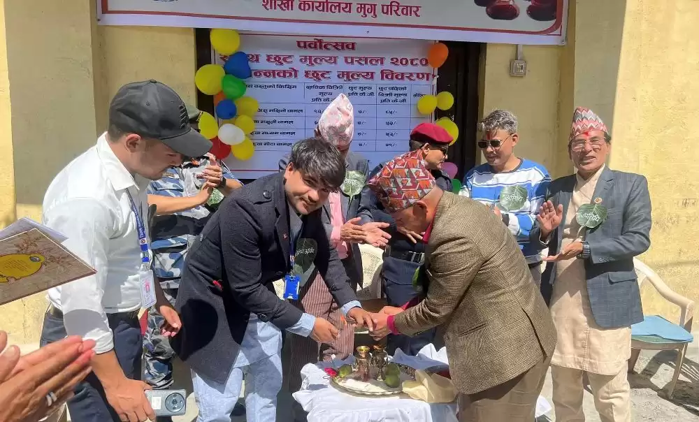 मुगु । खाद्य व्यवस्था तथा व्यापार कम्पनी लिमिटेड मुगुले सुपथ छुट मूल्यमा चामल तथा दाल बिक्री गर्न सुरु गरेको छ । नेपालीहरुको चाड दशैं, तिहार र छड पर्वलाई लक्षित गर्दै खाद्य कम्पनी मुगुले आइतबारदेखि चामलमा प्रतिकिलो ७ रुपयाँका दरले छुट दिई बिक्री गर्न सुरु गरेको हो । जिल्ला समन्वय समितिका प्रमुख मञ्जनबहादुर कार्कीले सुपथ मुल्य पसलको उद्घाटन गर्दै छुट मूल्यमा चामल तथा दाल बिक्री गर्न सुरु गरिएको हो ।