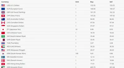 अमेरिकी डलर एकको खरिद दर १३२ रुपैयाँ ९५ पैसा र बिक्री दर १३३ रुपैयाँ ५५५ पैसा पुगेको छ।