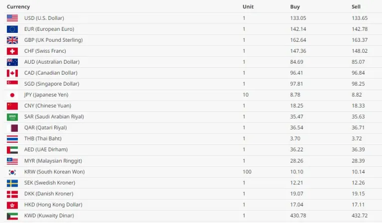 अमेरिकी डलर एकको खरिद दर १३३ रुपैयाँ ०५ पैसा र बिक्री दर १३३ रुपैयाँ ६५ पैसा पुगेको छ।