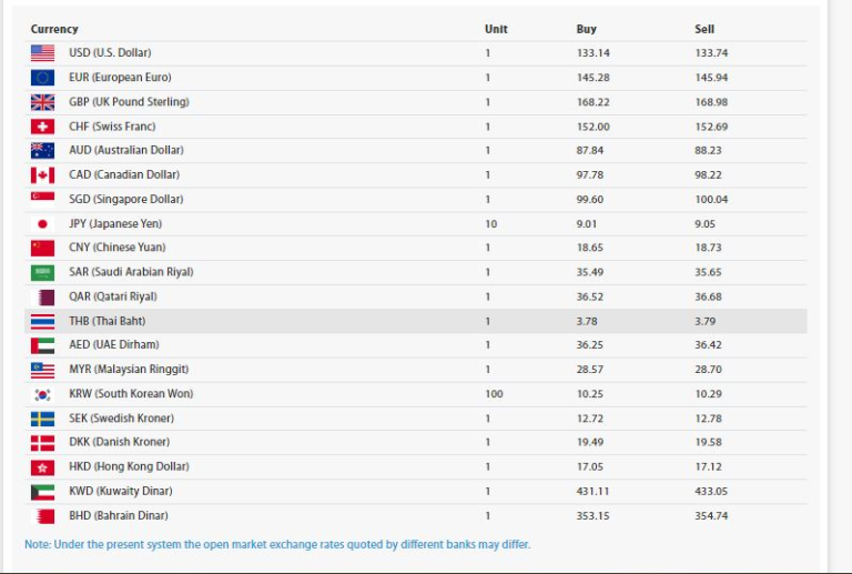 यस्तै आज अमेरिकी डलरको खरिद दर १३३ रुपैयाँ १४ पैसा र बिक्री दर १३३ रुपैयाँ ७४ पैसा रहेको छ । युरो एकको खरिद दर १४५ रुपैयाँ २८ पैसा र बिक्री दर १४५ रुपैयाँ ९४ पैसा रहेको छ ।