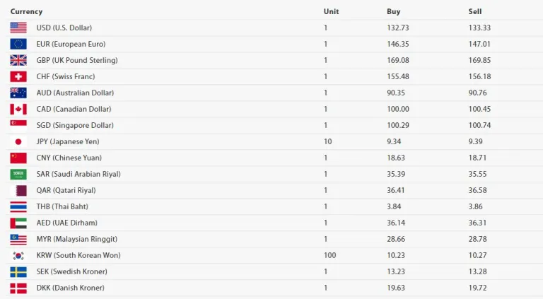 अमेरिकी डलर एकको खरिद दर १३२ रुपैयाँ ७३ पैसा र बिक्री दर १३३ रुपैयाँ ३३ पैसा पुगेको छ।