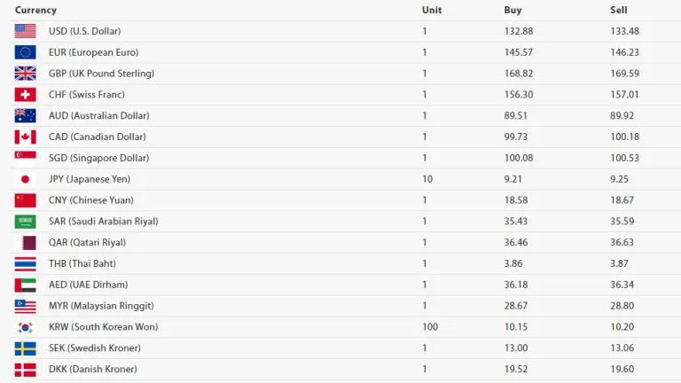 अमेरिकी डलर एकको खरिद दर १३२ रुपैयाँ ८८ पैसा र बिक्री दर १३३ रुपैयाँ ४८ पैसा पुगेको छ।