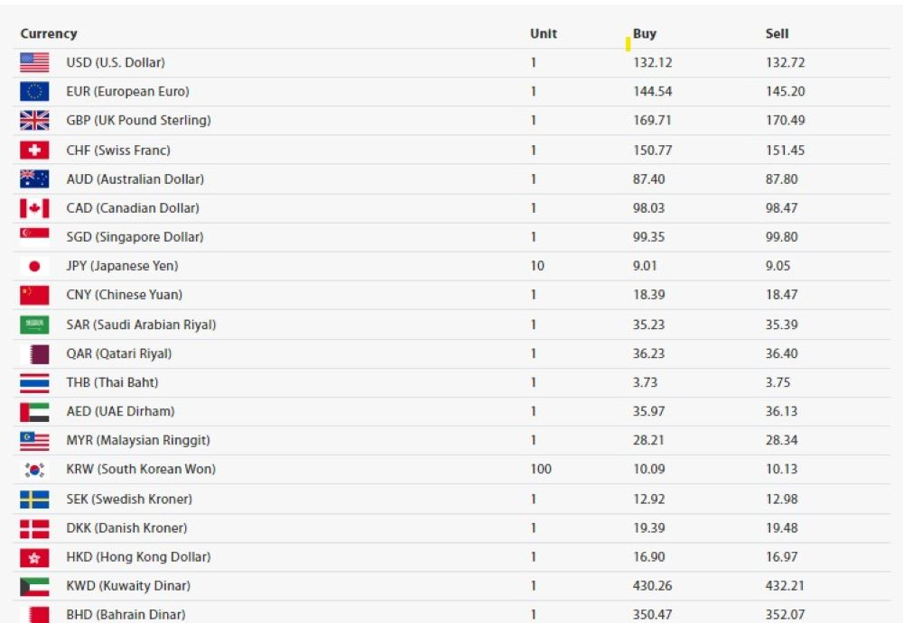 जसअनुसार आज आज अमेरिकी डलर एकको खरिद दर १३२ रुपैयाँ १२ पैसा र बिक्री दर १३२ रुपैयाँ ७२ पैसा रहेको छ । सोमबार अमेरिकी डलर एकको खरिद दर १३२ रुपैयाँ १६ पैसा र बिक्री दर १३२ रुपैयाँ ७६ पैसा रहेको थियो ।
