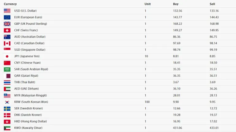 अमेरिकी डलर एकको खरिद दर १३२ रुपैयाँ ५६ पैसा र बिक्री दर १३३ रुपैयाँ १६ पैसा पुगेको छ।