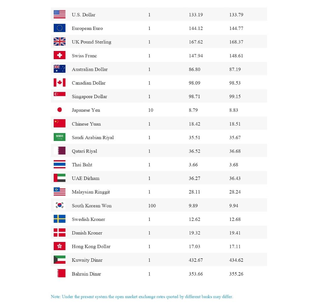 त्यस्तै, युरो एकको खरिद दर १४४ रुपैयाँ १२ पैसा र बिक्री दर १४४ रुपैयाँ ७७ पैसा रहेको छ । बेलायती पाउण्ड एकको खरिद दर १६७ रुपैयाँ ६२ पैसा र बिक्री दर १६८ रुपैयाँ ३७ पैसा रहेको छ ।