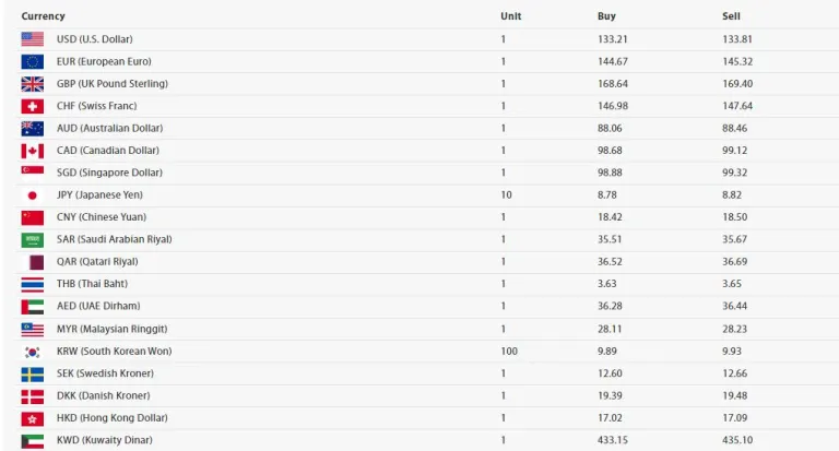 अमेरिकी डलर एकको खरिद दर १३३ रुपैयाँ २१ पैसा र बिक्री दर १३३ रुपैयाँ ८१ पैसा पुगेको छ।