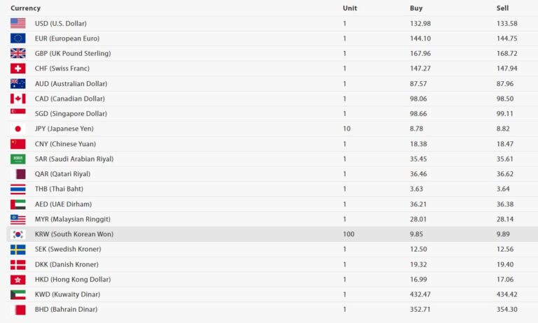 त्यस्तै, अमेरिकी डलरको खरिद दर १३२ रुपैयाँ ९८ पैसा र बिक्री दर ३३ रुपैयाँ ५८ पैसा रहेको छ । युरो एकको खरिद दर १४४ रुपैयाँ १० पैसा र बिक्री दर १४४ रुपैयाँ ७५ पैसा रहेको छ।