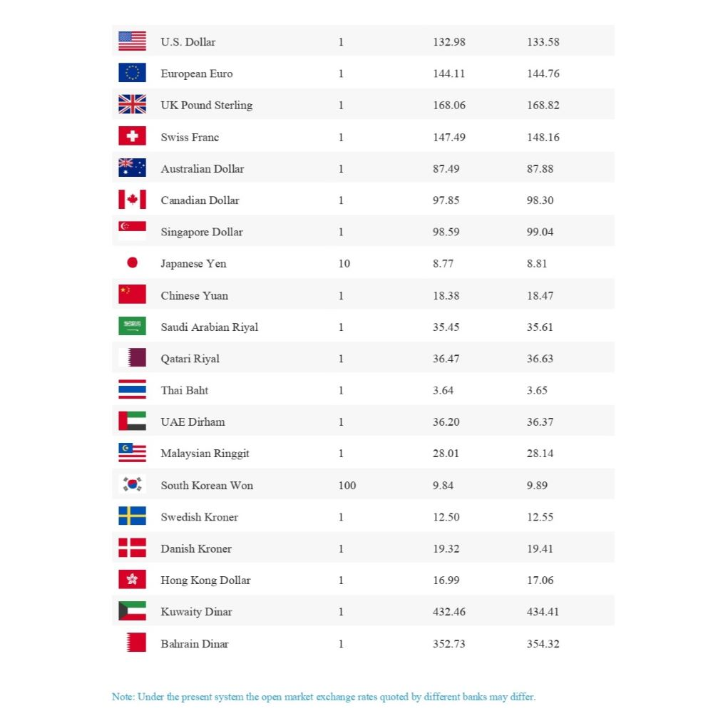 जसअनुसार आज अमेरिकी डलरको भाउ स्थिर छ । जसअनुसार डलर एकको खरिद दर १३२ रुपैयाँ ९८ पैसा र बिक्री दर ३३ रुपैयाँ ५८ पैसा कायम छ ।