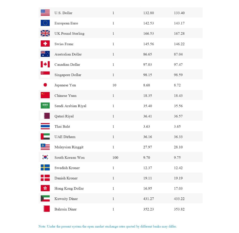 त्यस्तै, यूरोको विनिमय मूल्य भने घटेको छ । बिहीबार १४४ रुपैयाँ २६ पैसा र बिक्री दर १४४ रुपैयाँ ९१ पैसाले कारोबार भएकोमा राष्ट्र बैंकले शुक्रबारका लागि यूरो एकको खरिद दर १४२ रुपैयाँ ५३ पैसा र बिक्री दर १४३ रुपैयाँ १७ पैसा तोकेको छ ।