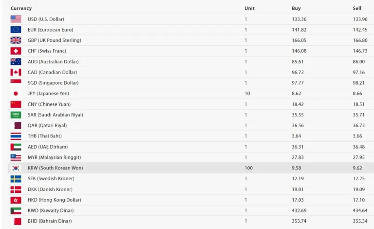 त्यस्तै गरी अमेरिकी डलरको खरिद दर १३३ रुपैयाँ ३६ पैसा र बिक्री दर १३३ रुपैयाँ ९६ पैसा रहेको छ । युरो एकको खरिद दर १४१ रुपैयाँ ८२ पैसा र बिक्री दर १४२ रुपैयाँ ४५ पैसा रहेको छ।