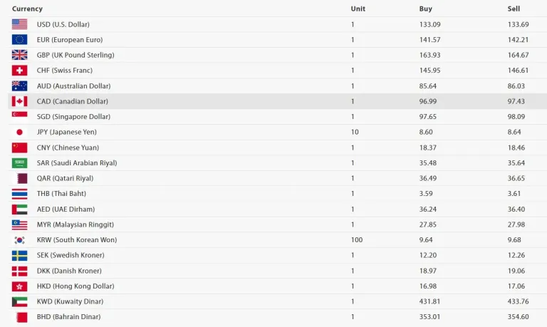 त्यस्तै, अमेरिकी डलर एकको खरिद दर १३३ रुपैयाँ ०९ पैसा रहेको छ भने बिक्री दर १३३ रुपैयाँ ६९ पैसा रहेको छ । युरो एकको खरिद दर १४१ रुपैयाँ ५७ पैसा रहेको छ भने बिक्री दर १४२ रुपैयाँ २१ पैसा रहेको छ ।