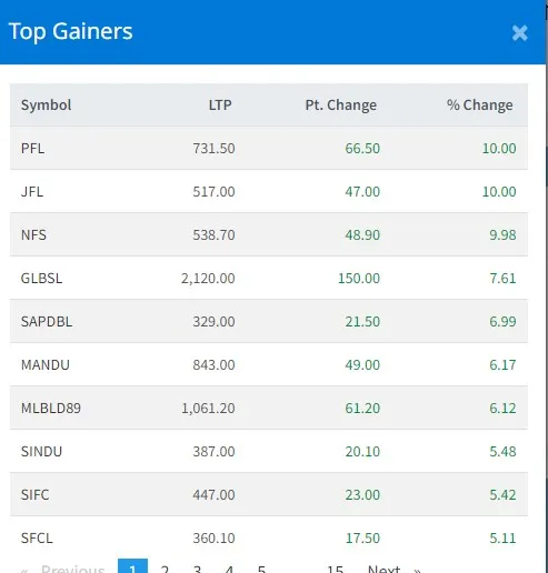आज सबैभन्दा धेरै पोखरा फाइनान्स र जानकी फाइनान्स कम्पनीका लगानीकर्ताले कमाएका छन् । आज यी दुई कम्पनीका लगानीकर्ताले १० प्रतिशतका दरले कमाएका छन् । नेपाल फाइनान्सका लगानीकर्ताले ९ दशमलव ९८ प्रतिशतका दरले कमाएका छन् ।