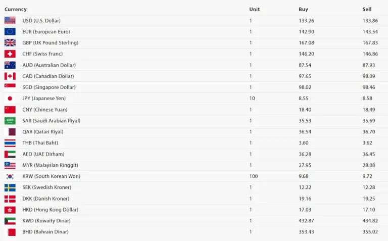 यस्तै, अमेरिकी डलरको खरिद दर १३३ रुपैयाँ २६ पैसा र बिक्री दर १३३ रुपैयाँ ८६ पैसा रहेको छ । युरो एकको खरिद दर १४२ रुपैयाँ ९० पैसा र बिक्री दर १४३ रुपैयाँ ५४ पैसा रहेको छ।