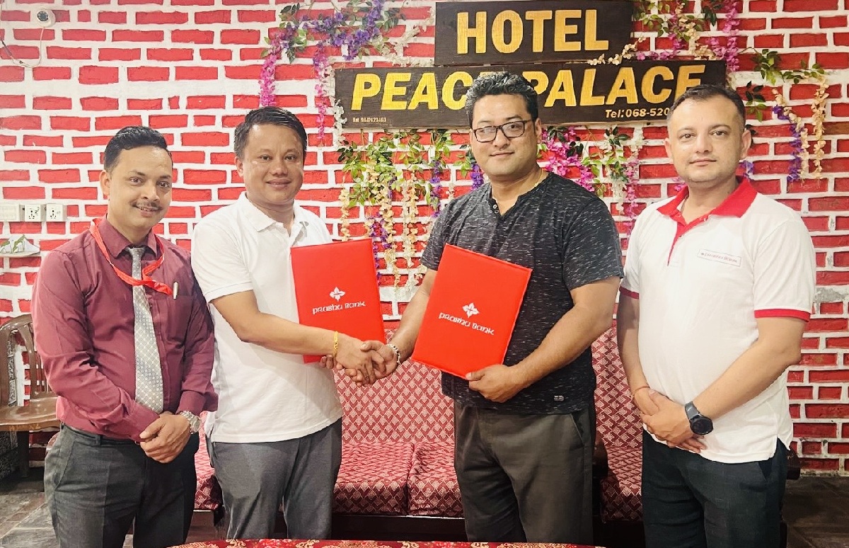 छुट्टाछुट्टै समारोहका बिच सम्पन्न सम्झौतामा न्यु होटल पिस प्यालेसका सञ्चालक निलेश राजभण्डारी, होटल दि राजनका सञ्चालक एन्जिल शाक्य र प्रभु बैँकका तर्फबाट गण्डकी प्रदेशका प्रमुख प्रदेश अधिकृत राजु राना मगर द्वारा हस्ताक्षर गरिएको हो ।