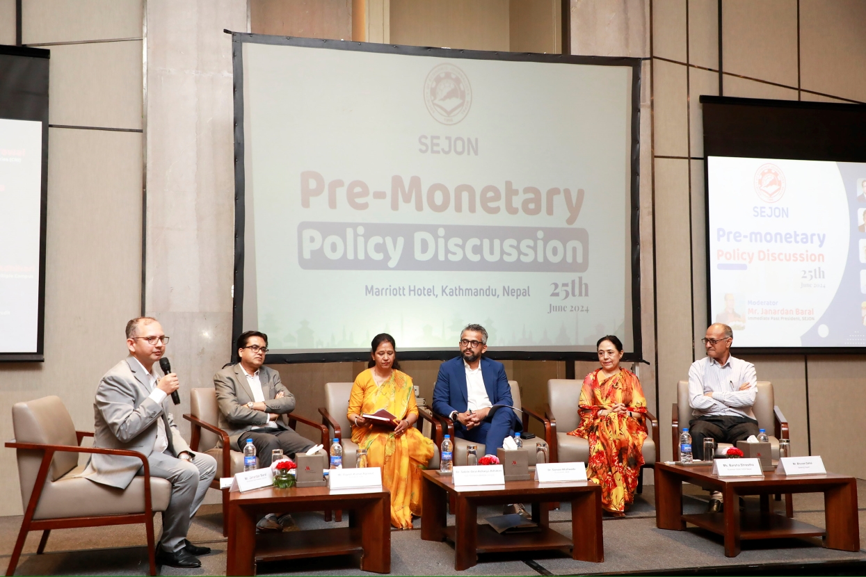 नेपाल आर्थिक पत्रकार समाज (सेजन) ले आज आयोजना भएको आगामी आर्थिक वर्षको मौद्रिक नीतिका सम्बन्धमा आयोजित छलफलमा सहभागीले सरकारको वित्त नीतिलाई सघाउने गरी केन्द्रीय बैंकले मौद्रिक नीति ल्याउनुपर्ने आवश्यकता औँल्याएका हुन् ।
