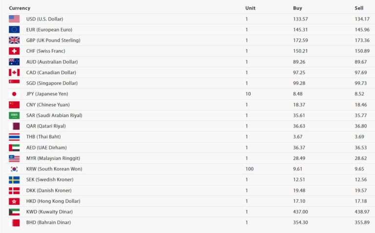 आज अमेरिकी डलर एकको खरिद दर १३३ रुपैयाँ ५७ पैसा र बिक्री दर १३४ रुपैयाँ १७ पैसा रहेको छ। युरो एकको खरिद दर १४५ रुपैयाँ ३१ पैसा र बिक्री दर १४५ रुपैयाँ ९६ पैसा रहेको छ।