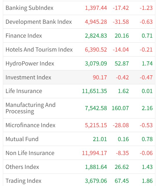 बजार झिनो अंकले मात्रै उचालिंदा बैंकिङ, विकास बैंक, होटल, लगानी, लघुवित्त र निर्जीवन बीमा कम्पनी भने घटेका छन् । आज उत्पादनमूलक समूह सबैभन्दा बढी २.१६ प्रतिशतले बढेको छ ।साताको पहिलो दिन हिजो आइतबार बजार ६१.६१ ऋंकले बढ्दा १५ अर्ब २३ करोड ८२ लाख ७१ हजार २ सय ९०.९८ रुपियाँ बराबरको कारोबार भएको थियो ।