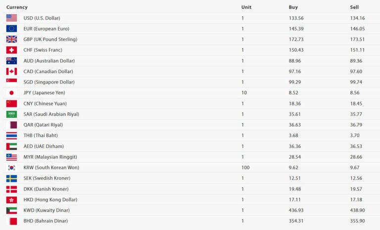 आज अमेरिकी डलर एकको खरिद दर १३३ रुपैयाँ ५६ पैसा र बिक्री दर १३४ रुपैयाँ १६ पैसा रहेको छ। युरो एकको खरिद दर १४५ रुपैयाँ ३९ पैसा र बिक्री दर १४६ रुपैयाँ ५ पैसा रहेको छ।
