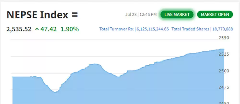 काठमाडौँ । नेप्सेले २५ सय अंक पार गरेको छ । नयाँ सरकार गठन भएसँगै बढीरहेको नेप्से मंगलबार २५ सय अंक पार गरेको हो ।