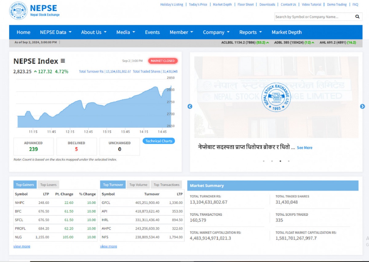 नेप्सेका अनुसार, नेशनल हाइड्रोपावर, वेस्ट फाइनान्स, समृद्धि फाइनान्स, प्रोगे्रसिभ फाइनान्स र एनएलजी इन्स्योरेन्स कम्पनीको शेयर मूल्यमा १० प्रतिशतले वृद्धि भई सकारात्मक सर्किट लागेको छ । लक्ष्मी उन्नति कोष चार दशमलव ७१, माईखोला हाइड्रोपावर तीन दशमलव ५९, एनआइसी एसिया फ्लेक्स एक दशमलव ८७, सनराइज फोकस्ड इक्विटी फण्ड एक दशमलव ८१ र सामुदायिक लघुवित्तका लगानीकर्ताले एक दशमलव ६१ प्रतिशतले गुमाएका छन् ।