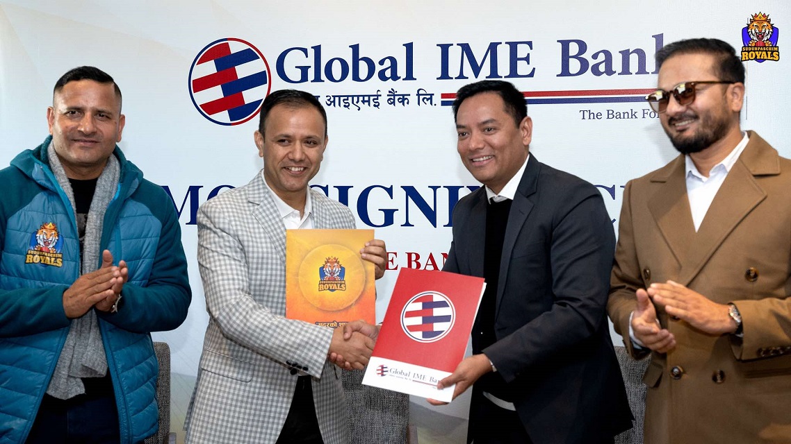 काठमाडौं । सिद्धार्थ बैंक नेपाल प्रिमियर लिग (एनपीएल) टोली सुदूरपश्चिम रोयल्स र ग्लोबल आईएमई बैंकबीच मुख्य प्रायोजन सम्झौता भएको छ । काठमाडौँमा आयोजित कार्यक्रममा ग्लोबल आईएमई बैंक र सुदूरपश्चिम रोयल्सबीच सम्झौता भएको हो ।