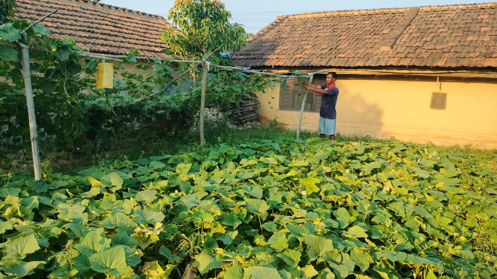 वैदेशिक रोजगारीबाट फर्केर चौधरीले चार कठ्ठा जग्गा थपेपछि उनको कुल जग्गा नौ कठ्ठा पुगेको थियो। त्यही जग्गामा उनले बाह्रै महिना तरकारी खेती गर्दै आएका छन्। “थोरै जग्गा थियो, सात जनाको परिवारको खर्च चलाउन चुनौतीपूर्ण थियो,” उनले भने, “घर फर्केर चार कठ्ठा जग्गा थपेपछि केही सहज भएको छ।”