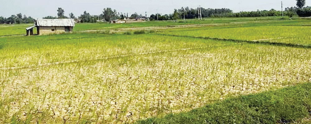 सुदूरपश्चिम।सुदूरपश्चिम प्रदेशका कैलाली र कञ्चनपुरसहितका जिल्लामा मनसुन सक्रिय हुन नसक्दा धानबाली खडेरीको चपेटामा परेको छ। बोरिङमार्फत पानी तानेर रोपिएको धान अब चर्को गर्मी र सुक्खा मौसमका कारण सुक्न थालेको किसानले गुनासो गरेका छन्।