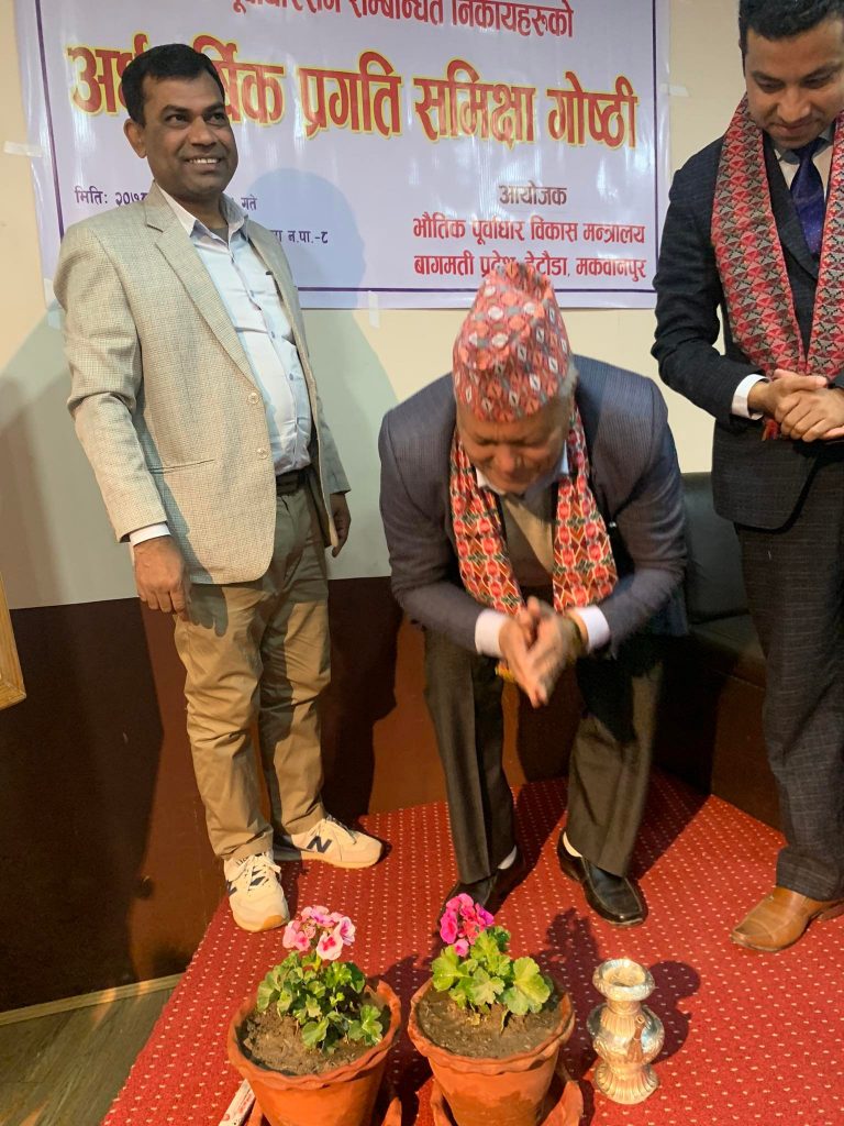 काठमाडौं । बागमति प्रदेशको भौतिक पूर्वाधार विकास मन्त्रालय अन्तर्गत सडक पूर्वाधारसँग सम्वधित निकायहरुको अर्धवार्षिक समिक्षा गोष्ठी सुरु भएको छ । मन्त्रालयको अर्धवार्षिक समिक्षा गोष्ठी भक्तपुरको रत्नागिरी रिशोर्टमा आइतबार सुरू भएको हो ।