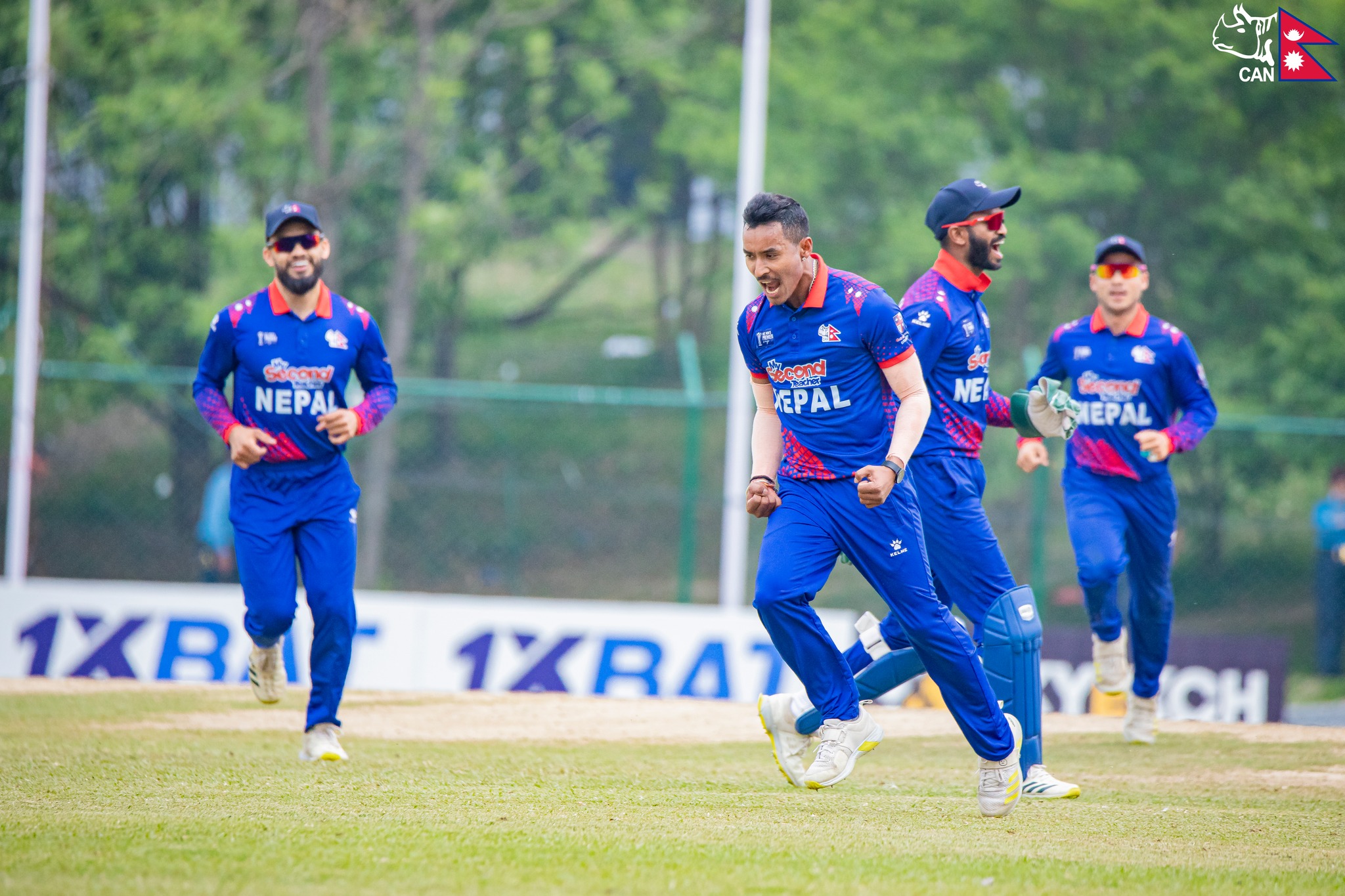 कतारका इमाल लियानेज, कमरान खान, जाहिर इब्राहिम, मोहम्मद तनवीर र इक्रामुल्लाह खान आउट भएका हुन् । कमरान खान आठ, जाहिर १५, लियानज ६ र तनवीर शून्य रनमै आउट भए । सन्दीप लामिछानेले तीन र सोमपाल कामीले एक विकेट लिएका छन् ।