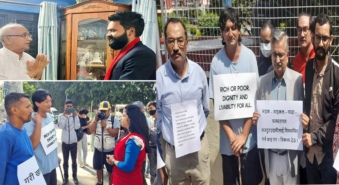 थापा र पाण्डेले अनशनस्थत राष्ट्रियसभा गृहअगाडिको सडकमा पुगेर ईः को आन्दोलनमा समर्थन जनाउँदै फुटपाथ र सडक खाली गर्ने नाममा गरिबलाई लखेट्न नहुने बताए।