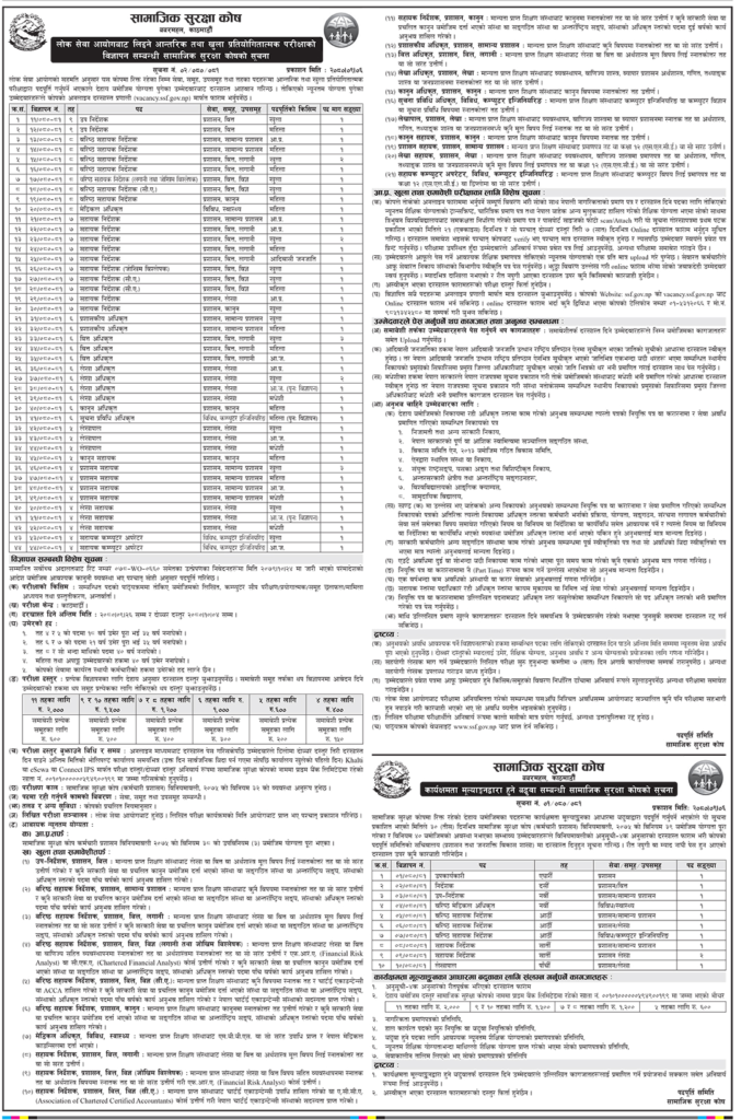 काठमाडौं । सामाजिक सुरक्षा कोषले रिक्त पदपूर्तिका लागि आवेदन माग गरेको छ । लोक सेवा आयोगबाट लिइने आन्तरिक तथा खुला प्रतियोगितात्मक परीक्षाका कोषले दरखास्त माग गरेको हो ।