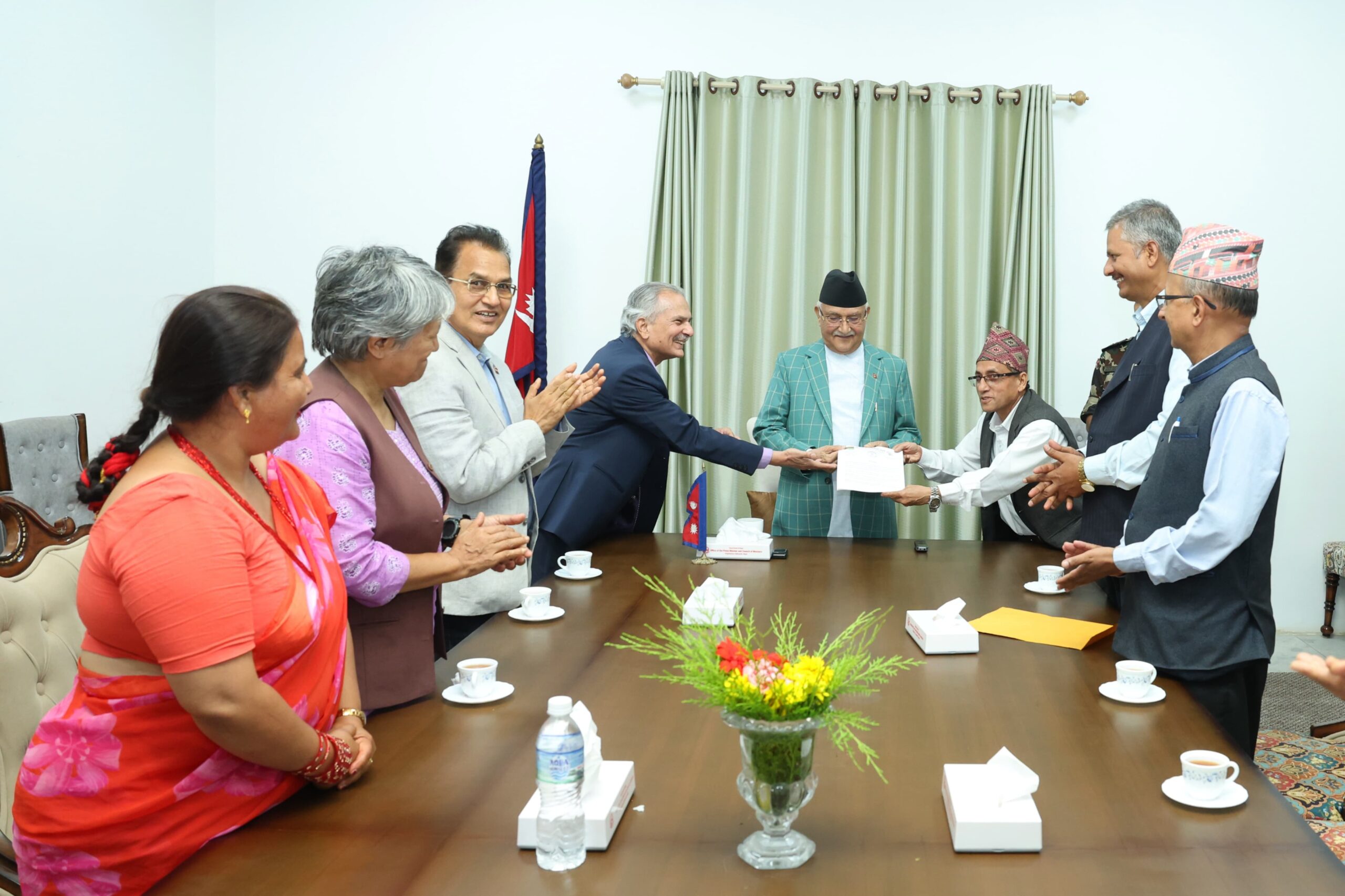 प्रधानमन्त्री तथा मन्त्रिपरिषद्को कार्यालय, सिंहदरबारमा भएको भेटमा प्रधानमन्त्री ओलीले भने, ‘कम्तीमा म प्रधानमन्त्री र नेकपा (एमाले) को अध्यक्ष रहुञ्जेल अहिले चर्चामा ल्याइए जस्तो नेपालमा बङ्गलादेश वा श्रीलङ्कामा भएका जस्ता घटना हुने स्थिति हुँदैनन् । मेरो अबको २२ महिने कार्यकालभित्र संक्रणकालीन न्यायलाई टुङ्गोमा लाने गरी काम गरिन्छ ।’