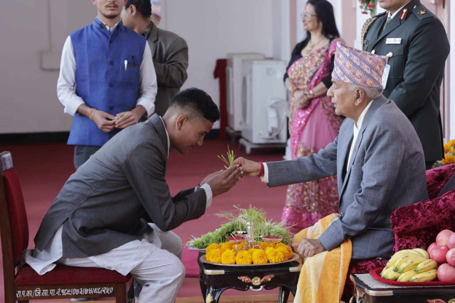 राष्ट्रपतिले दाइका हातबाट टीका लाउने