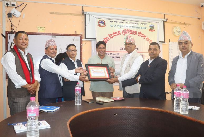 कार्यक्रमको अवसरमा नगरभित्रका दशवटै वडालाई पूर्णखोप सुनिश्चितता घोषणा र वडा नं १ लाई पूर्ण संस्थागत प्रसूति सेवायुक्त वडा घोषणा गरिएको छ । पाल्पालाई विसं २०७० फागुन १३ गते नेपालकै पहिलो पूर्णखोप सुनिश्चितजिल्ला घोषणा गरिएको थियो ।