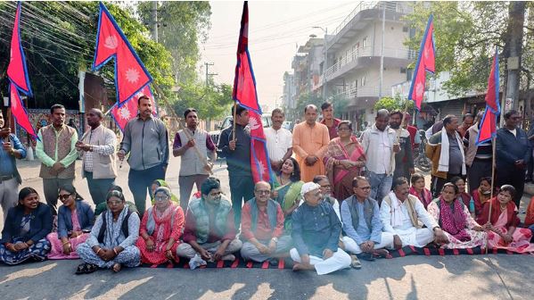काठमाडौं । मधेश प्रदेशमा बढ्दो राजनीतिक विवादले चुलिँदै जाँदा सात दलीय गठबन्धनका सांसदहरू फेरि सडकमा उत्रिए । मुख्यमन्त्री नियुक्ति अस्वीकार गर्दै उनीहरूले आइतबार प्रदेश सभा भवन अगाडि सडकै छेकेर धर्ना दिए।