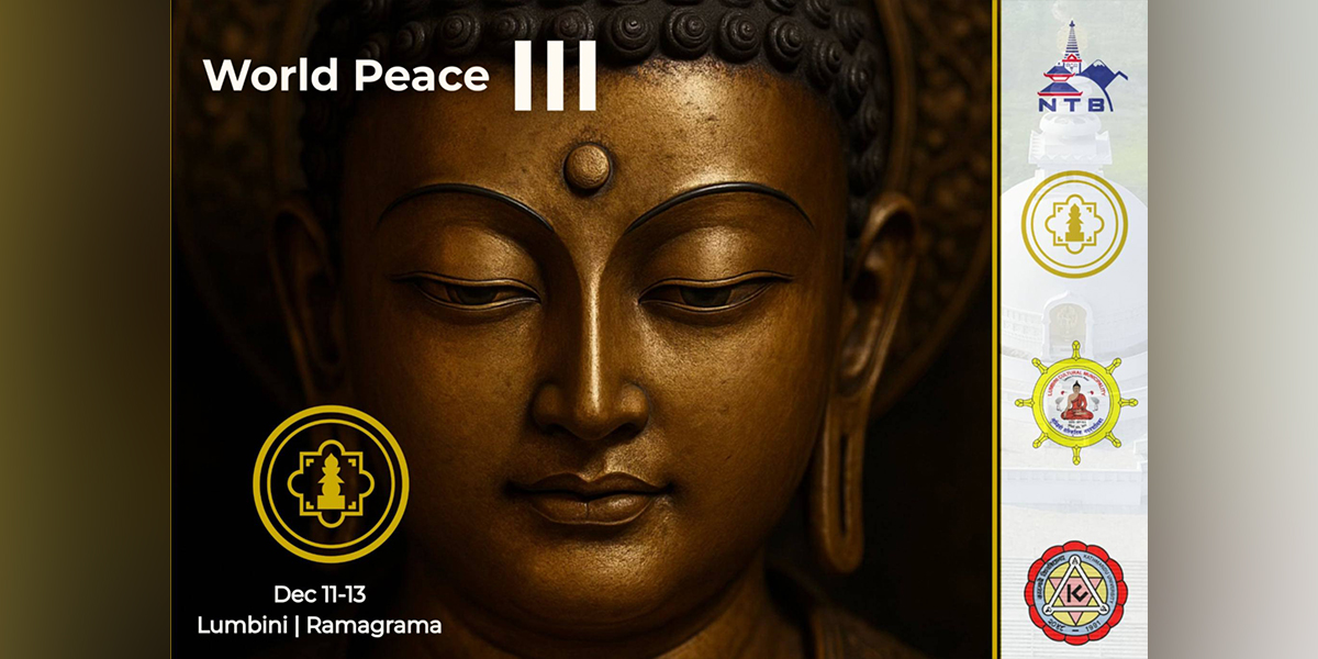 काठमाडौँ। ‘समृद्ध भविष्यका लागि शान्ति’को आह्वानसहित यही मङ्सिर २५ देखि २७ गतेसम्म लुम्बिनी र रामग्राममा तेस्रो संस्करणको ‘विश्व शान्ति कार्यक्रम’ आयोजना गरिएको छ ।