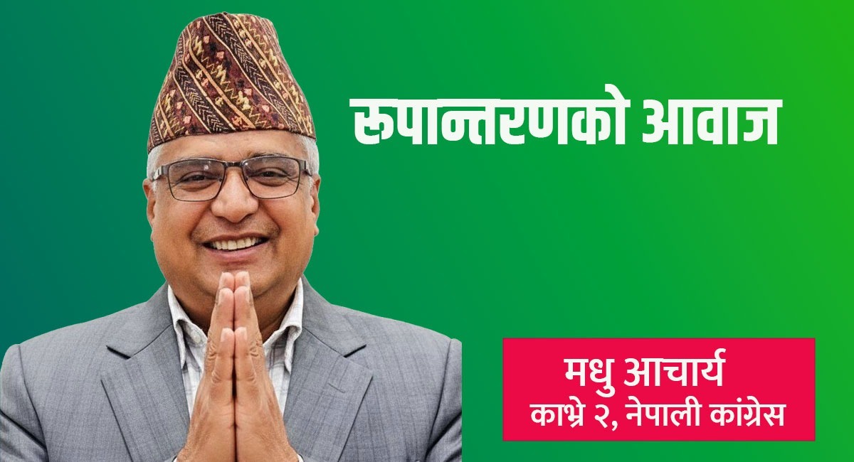 काभ्रेपलाञ्चोक । यही फागुन २१ गते हुने प्रतिनिधि सभा सदस्य निर्वाचनमा काभ्रे क्षेत्र नं २ मा मधु आचार्य प्रतिस्पर्धामा रहेका छन् । पुस्तान्तरण, वैचारिक र सांगठनिक सुधारमार्फत पार्टी रूपान्तरणको आवाज सशक्त उठाएर स्थापित गर्न सफल नेपाली कांग्रेसका केन्द्रीय सदस्य रहेका आचार्यको पार्टीमा ठूलो योगदान रहेको छ ।