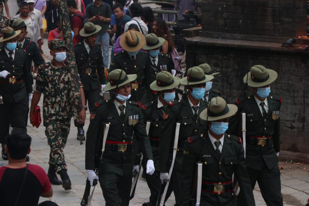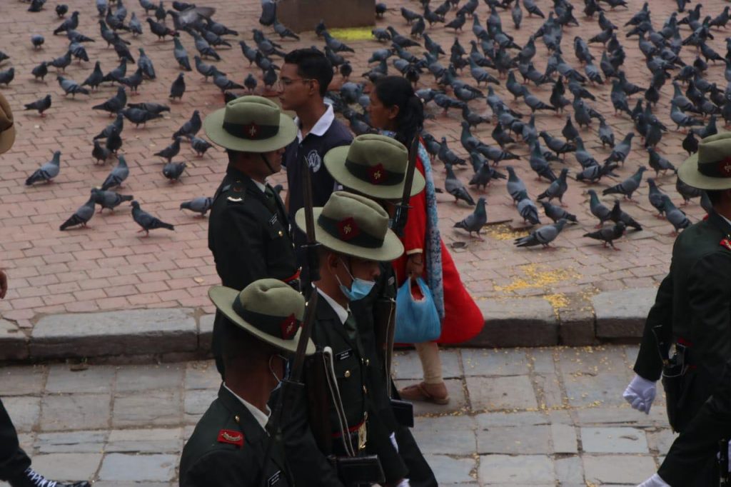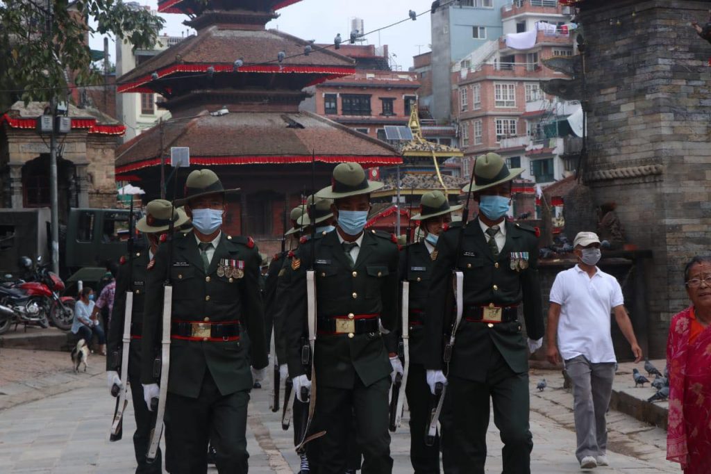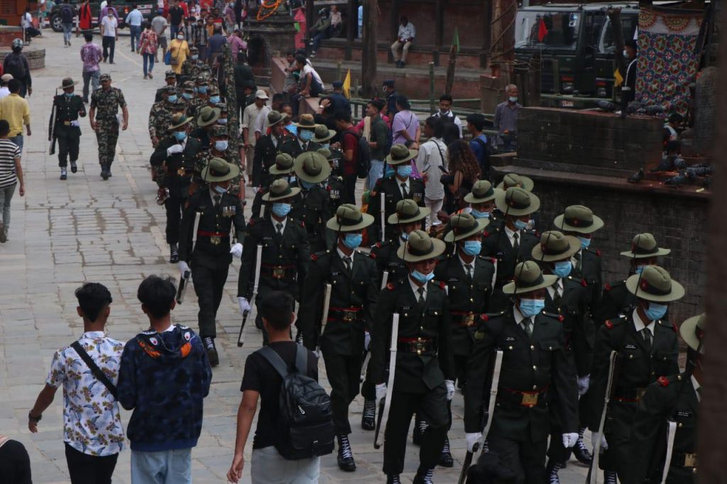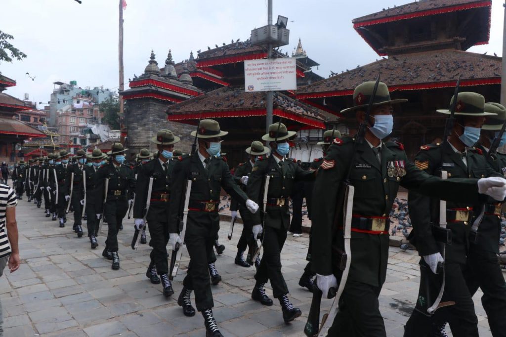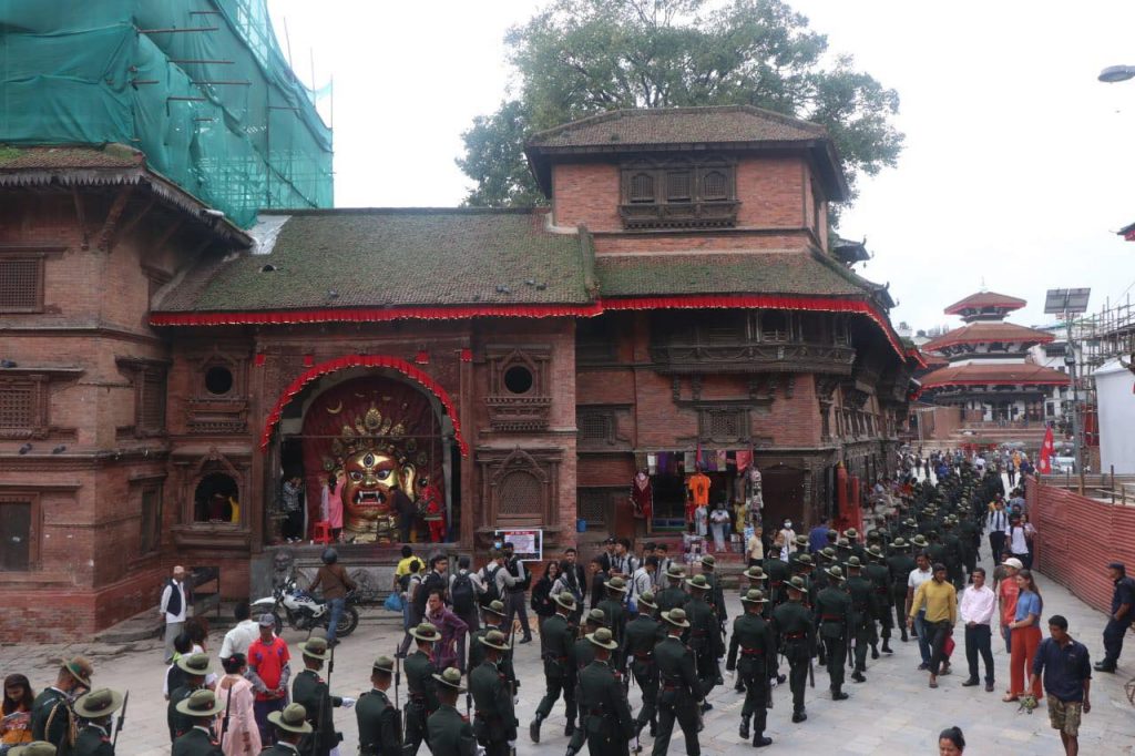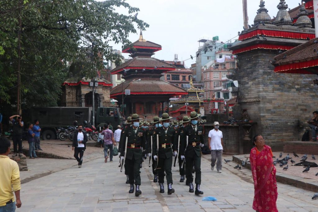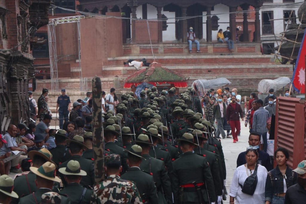 काठमाडौं । इन्द्रजात्रा पर्व बुधबारबाट सुरु भएको छ । यसको अन्तिम दिन शुक्रबार रहेको छ । उक्त दिनका लागि नेपाली सेनाले विशेष प्रस्तुती दिने गरेको छ । जसका लागि सेनाले वसन्तपुरमा रिहर्सल गरेको छ । साथै श्वेत भैरवको मूर्ती सिंगारिएको छ ।