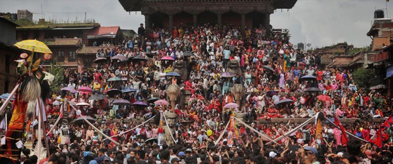 भक्तपुरको दरबार क्षेत्रसहितमा बिहीबार बिहानैदेखि गाईजात्रा मनाउनेको निकै ठूलो भिड लागेको छ । बिहिबार गाईजात्राले भक्तपुरको दरबार क्षेत्र निकै उज्यालो छ । दरबार क्षेत्रमा गाईजात्राले रौनकता छाएको छ ।