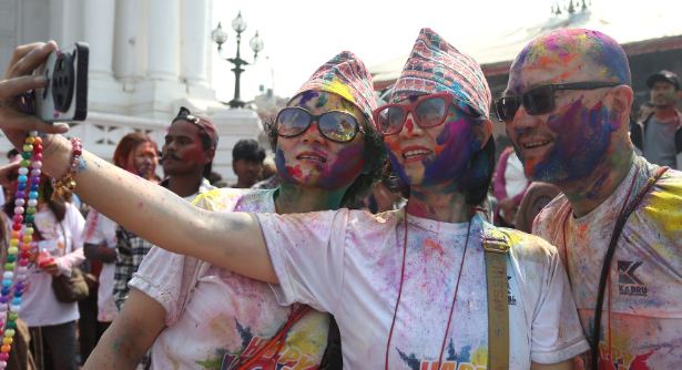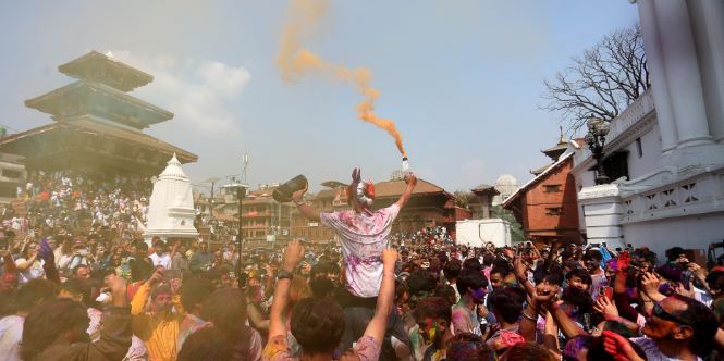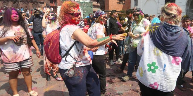 यद्यपि काठमाडौंको ऐतिहासिक एवं पर्यटकीय क्षेत्र बसन्तपुर दरबार क्षेत्रमा भने होलीको रौनक विशेष देखिएको छ। यहाँ भेला भएका स्वदेशी युवायुवती तथा विदेशी पर्यटकहरूले रंगीन उत्सवमा सहभागी हुँदै अबिर लगाउने, पानी छ्याप्ने र सांगीतिक धुनमा नाचगान गर्ने दृश्यले क्षेत्रलाई झनै जीवन्त बनाएको छ।