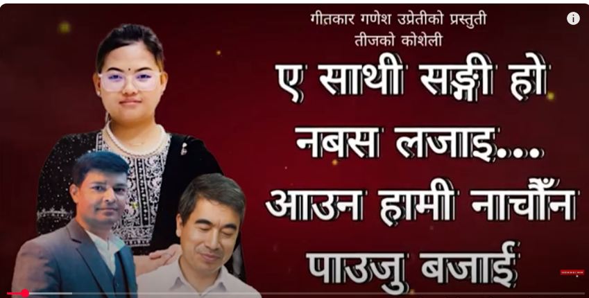काठमाडौं।तीज पर्वमा रातो सारी लगाएर माइती घरको आँगनीमा नाच्ने, दिदीबहिनीसँग भेटघाट गर्ने, दर खाने र भगवान शिवको आराधना गर्ने परम्परा हो ,हिन्दु नेपाली महिलाहरुको विशेष पर्व, हरितालिका तीज को अबसर पारेर गायिका पुनम गुरुङको सुमधुर आवाजमा सजिएको तीजको गीत “ए साथी सँगिहो” गीतको लिरिकल भिडियो सामाग्री गणेश उप्रेती (एरीना इन्टरटेन्टमेन्ट) यूटुब च्यानलमार्फत आज सार्वजनिक भएको छ । करुणा कंडेलको निर्माण रहेको यस गीतमा शब्द गीतकार गणेश उप्रेतीको रहेको छ भने संगीत संयोजन न्हुछे महर्जनले गरेका छन् ।